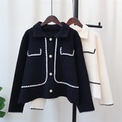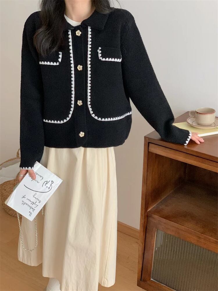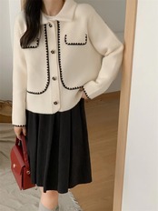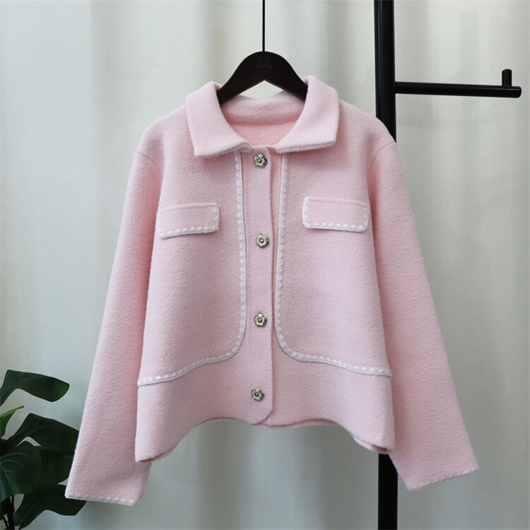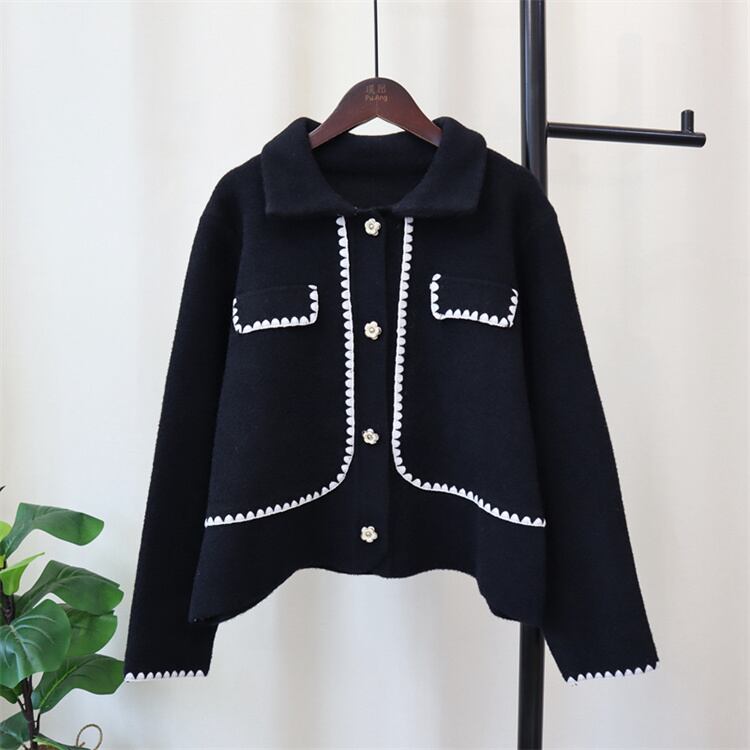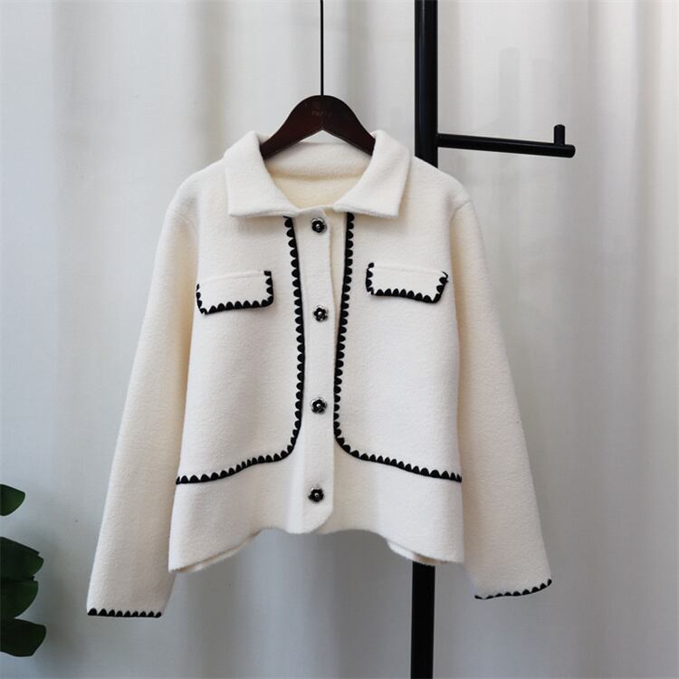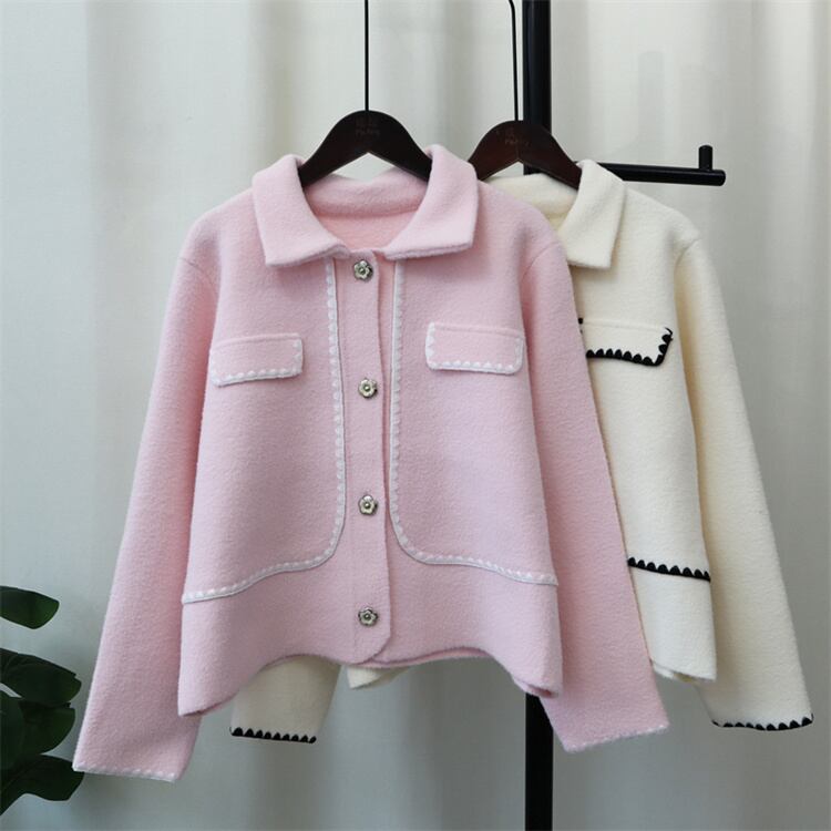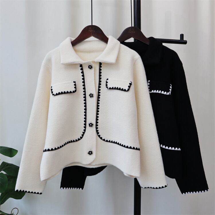 着痩せ効果 2024秋冬 差し色 ニットトップス 両面はねコート ゆったりする セーター デザインセンス