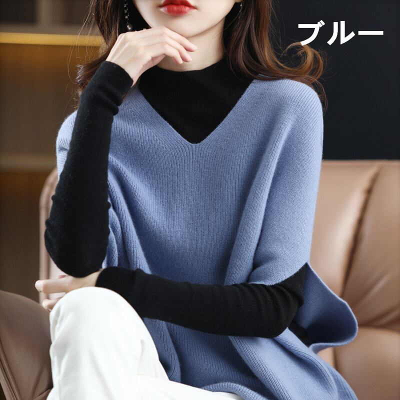 二の腕カバー ニット ベスト レディース レイヤード ニットベスト トップス セーター 半袖 チュニック