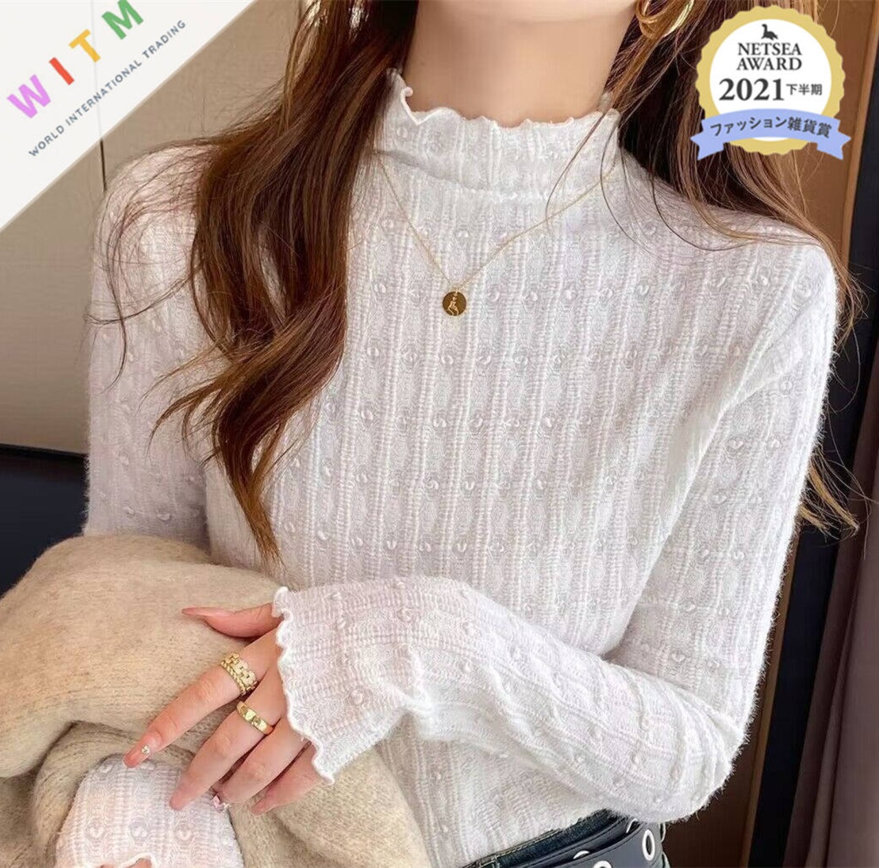 2023秋冬新作 トップス スタンドカラー パワション 着回し 体型カバー レディース