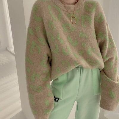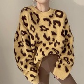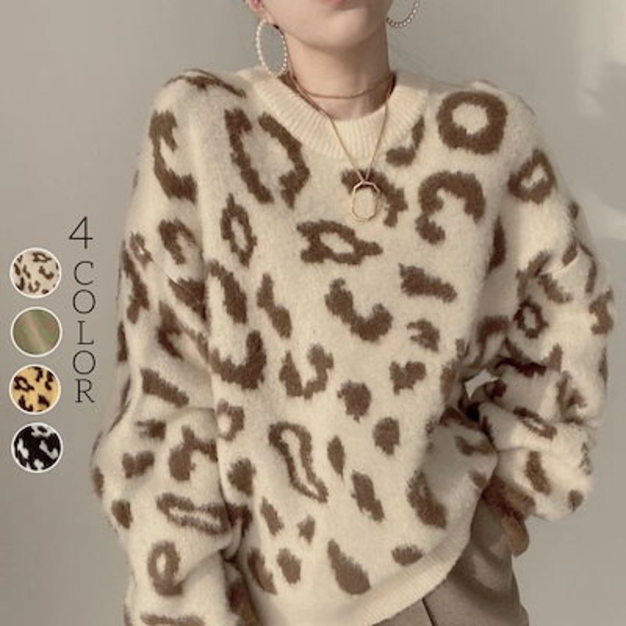 人気なリブニット 秋冬 ベーシックニット韓国ファッション 豹柄デザイン ニットトップス 怠惰な風セーター レディース ゆったり百掛け ニットセーター 冬暖かい カシミヤタッチ