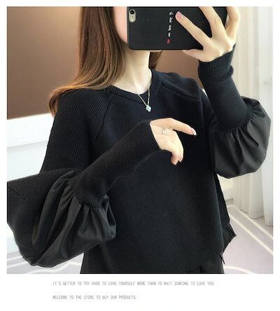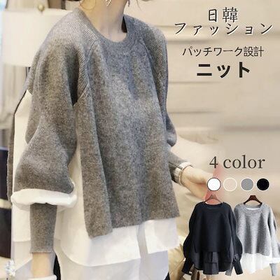 人気なリブニット ベーシックニット 韓国ファッション ニット秋冬 フェイクレイヤード 長袖 ニットトップス高級感 百掛け カジュアルセーター レディース 気質 通勤カシミヤタッチ