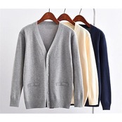 カーディガン レディース 長袖 通学 制服 Vネック 学生 事務服 オフィス 高校 看護師 介護 ポケットが飾り 無地 ショート丈 春 夏 秋 冬 羽織り