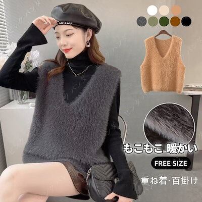 秋冬 流行り!重ね着 ベスト 暖かい もこもこノースリーブトップス 韓国ファッション ベーシックニットベスト 百掛け セーター レディース 無地 Vネック 着やせ 気質 ニットベスト