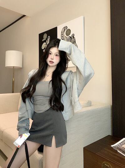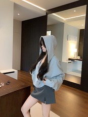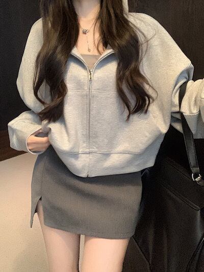 2024 秋冬トップスかわいいパーカー フード付き韓国風長袖ゆったり細見え白黒おしゃれレトロチャッシルエット甘め大人っぽ韓国フルサイズファッション系ルーズレディースサイドお出かけ学生通学トラック羽織り