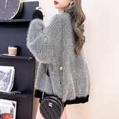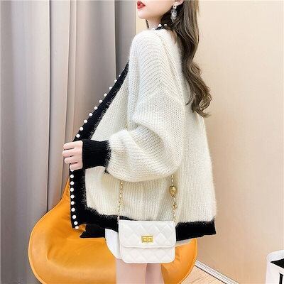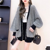 レディースファッション AWアウター 秋 冬 ジャケット フェザーヤーン 長袖 ニット カーディガン 体型カバー ボリューム感 保温性 トレンド感 初セーター コート カシミヤタッチ