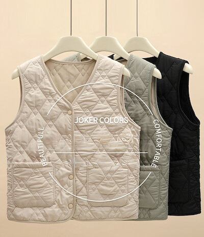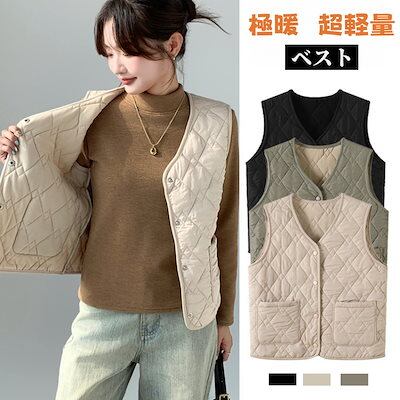 秋冬 超軽量 ベスト レディース アウター冬 極暖裹起毛 中綿 ジャケット 付ボタン ベスト L-3XL大きいサイズ シンプル百掛け無地 トップス 休? 防寒暖かい
