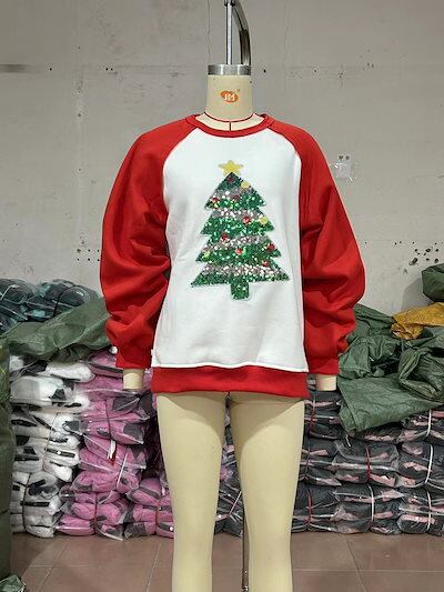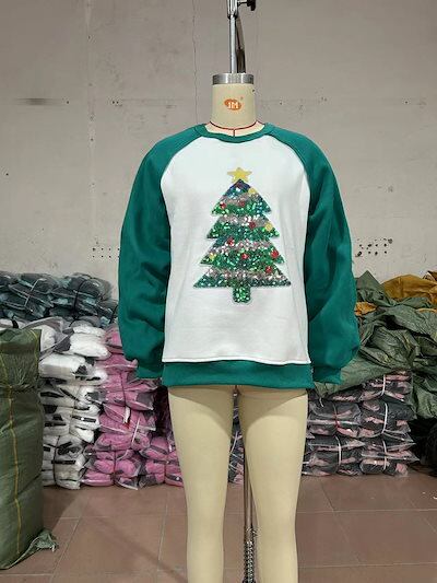 サンタコスプレ クリスマスツリー ビーズ ベルベット スウェット レディース スウェット 長袖 ルーズ トップス 秋冬 韓国