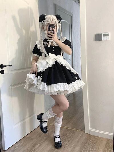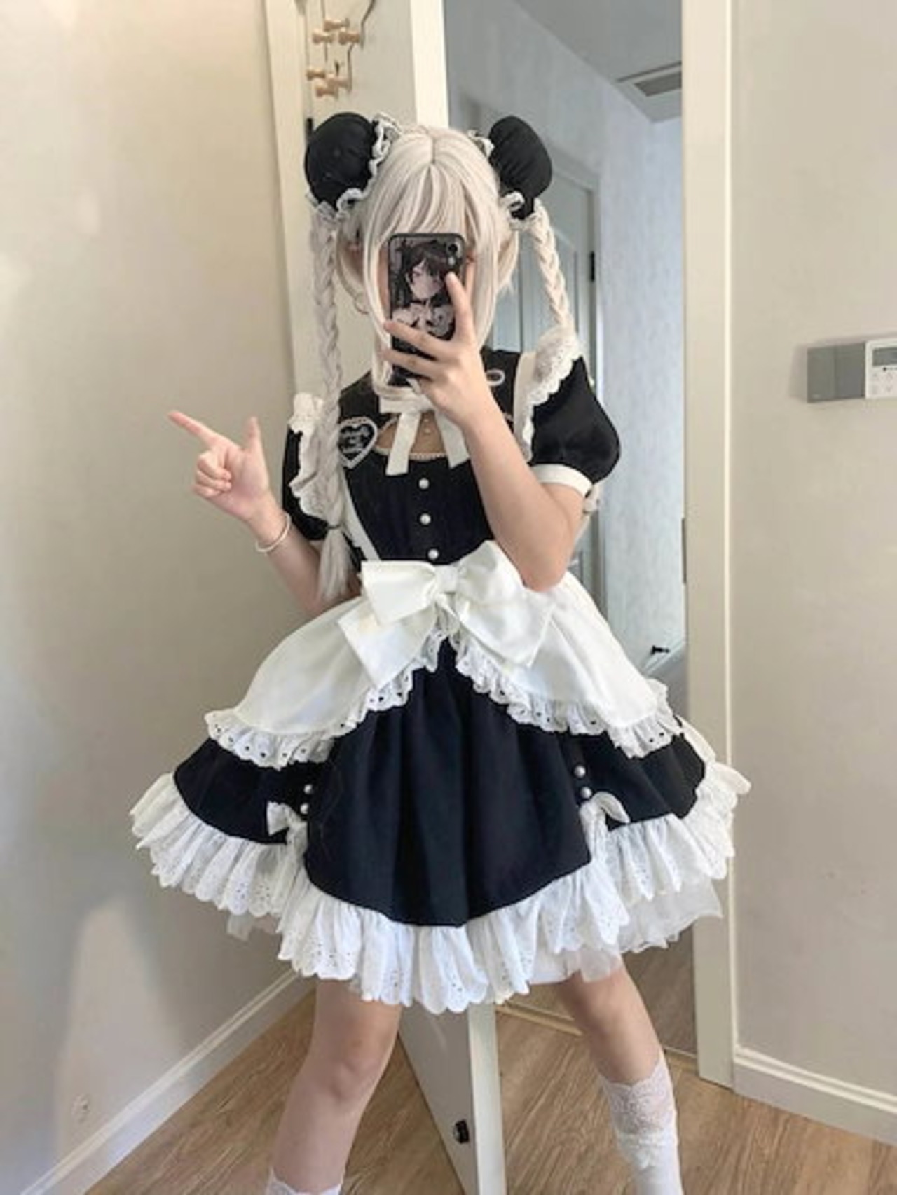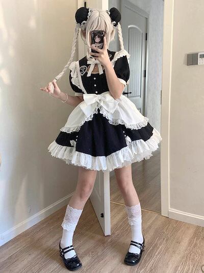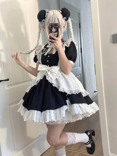 【3日以内出荷】コスプレ レディース日系メイド服半袖opスカートlo双子姉妹ロリータ ドレス 韓国ファッション レディース 韓国