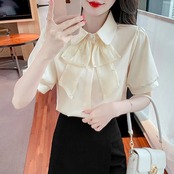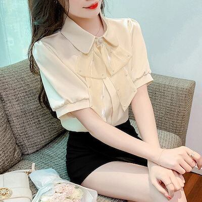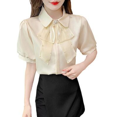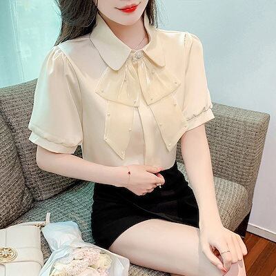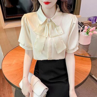 今っぽシアーシャツ 夏先取りブラウス 半袖ドールカラーシャツ女性2024夏韓国気質シャツシャツ小さなシャツデザインのブラウス 韓国ファッション