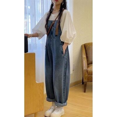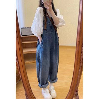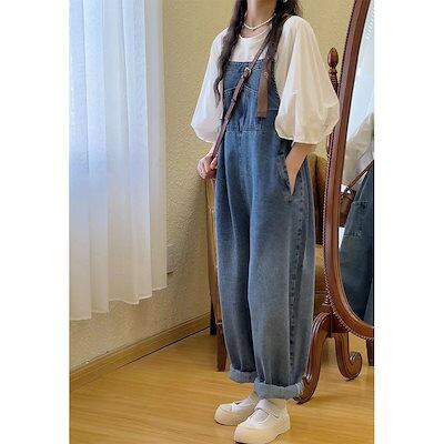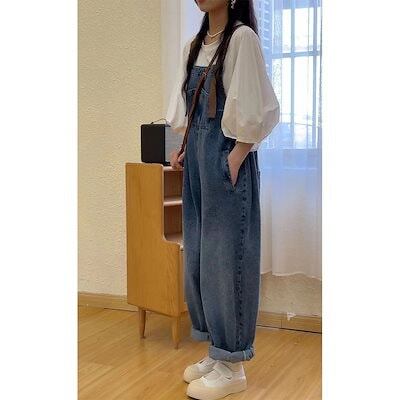 コーデ完成!サロペット 時短コーデ イチオシオールインワン 韓国ファッション 新品入荷 サロペット オールインワン 体型カバー ジーパン ワイドパンツ レディース オーバーオール デニム 福袋