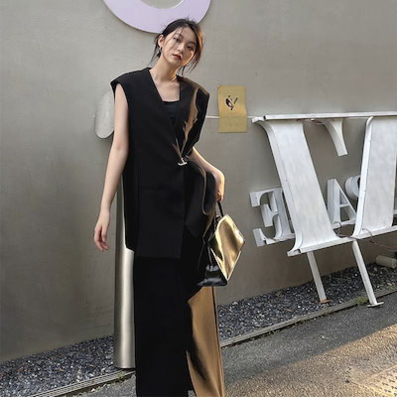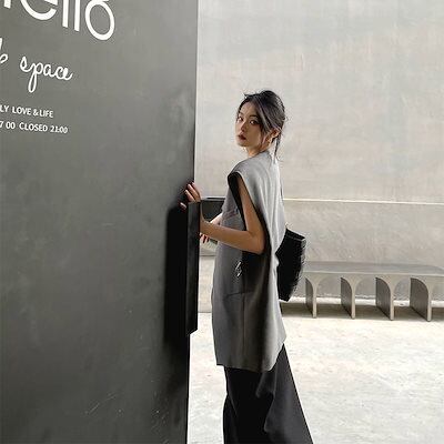 韓国ファッション トップス ベスト Vネック ノースリーブ ゆったり 細見え 夏 おしゃれ シンプル ベスト レディース お出かけ スーツアウター レディース