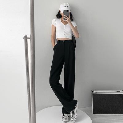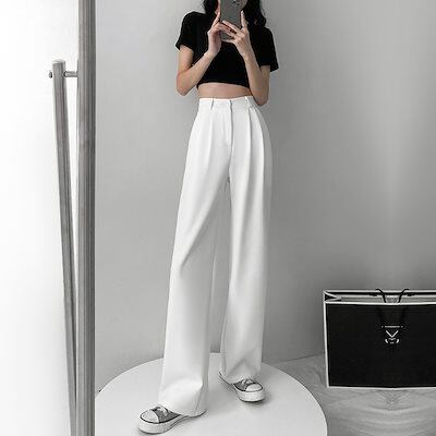 本日の限定商品 ワイドパンツ ホワイトアイスシルクワイドパンツ 夏の新作ハイウエストドレープワイドパンツ スリムなスーツパンツ ゆったりストレートパンツ ワイドパンツ レディース