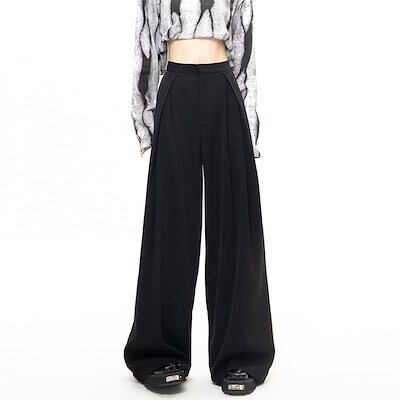 スラックスパンツ ワイドパンツ ゆったり カジュアル 怠惰風 通勤 高級感 スーツズボン ニッチデザイン ストレート ズボン モッピングパンツ 母の日