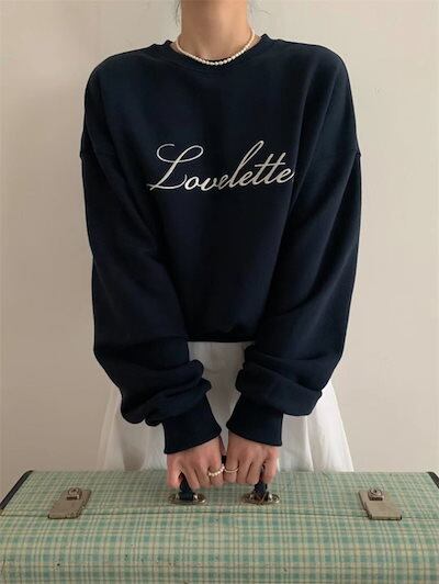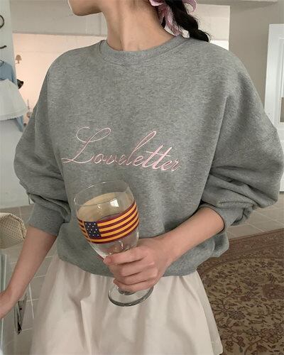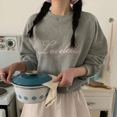 2024秋冬トップス スウェット ラウンドネック 長袖 英語 刺繍 ゆったり 秋 ピンク おしゃれ かわいい 韓国ファッション レディース お出かけ