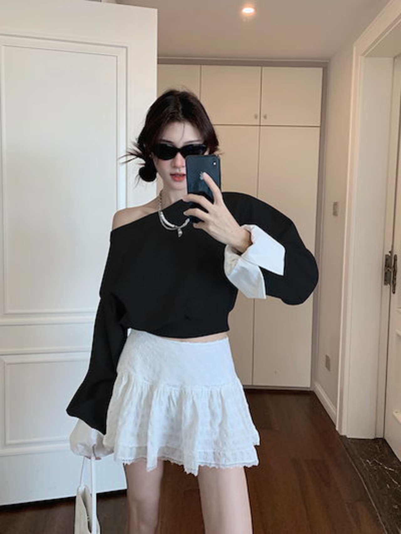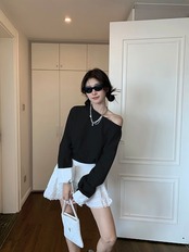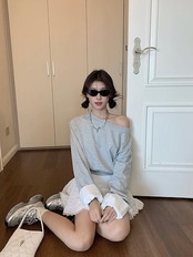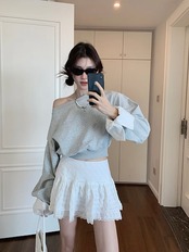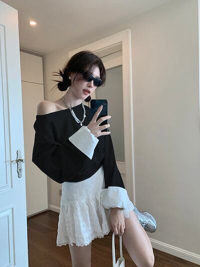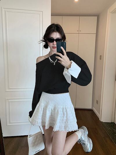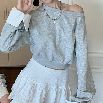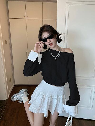 2024 秋冬トップス 長袖 肩見せ 丈短め 秋 黒 おしゃれ かわいい 韓国ファッション レディース お出かけ