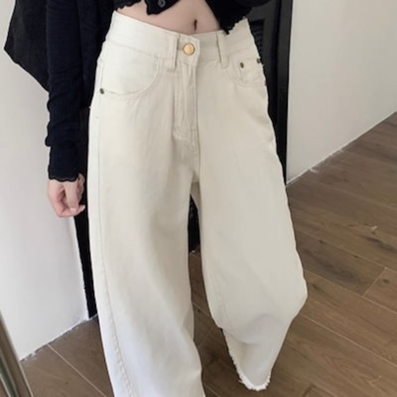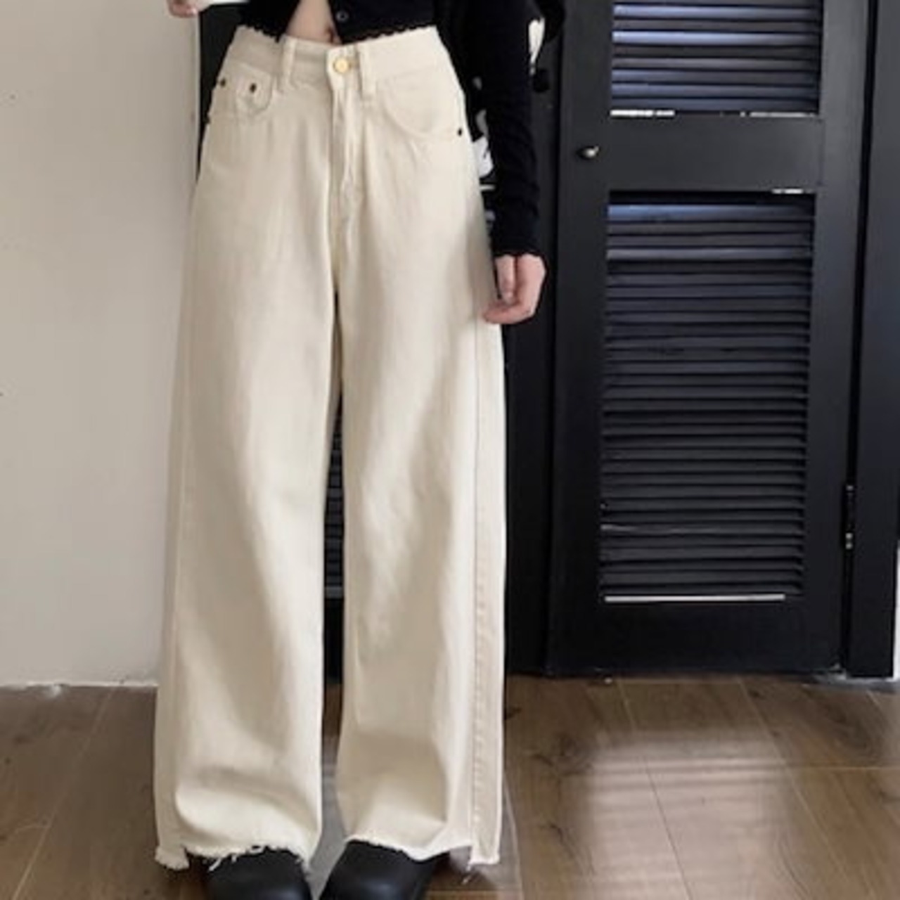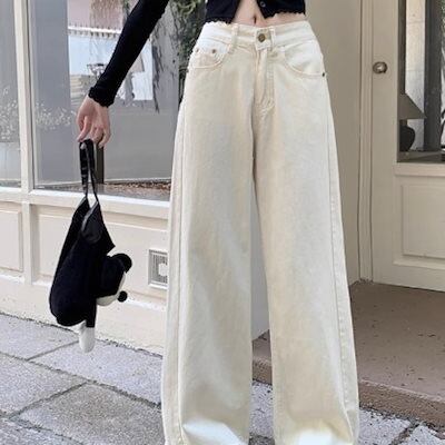 2024秋冬パンツ ロング丈 デニム ジーンズ ワイド ハイウエスト 美脚効果 脚長効果 細見え 秋 白 ホワイト おしゃれ かわいい 韓国ファッション レディース お出かけ