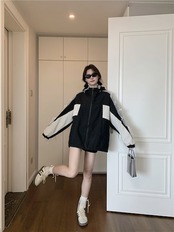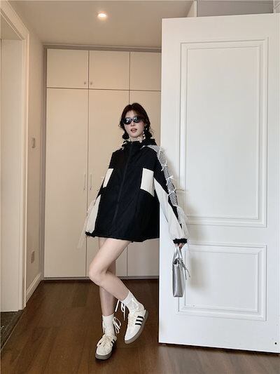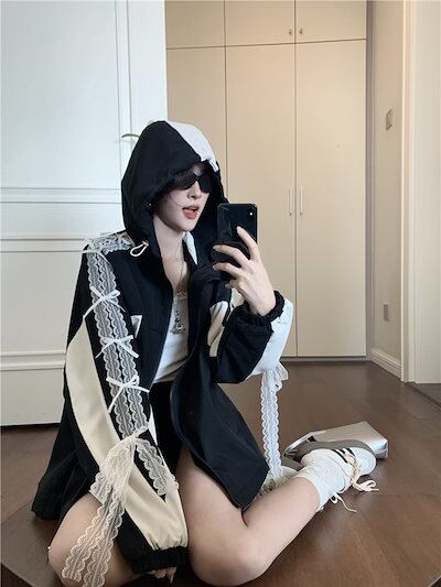 2024 秋冬アウター パーカー フード付き チャック 長袖 細見え 秋 黒 ブラック おしゃれ かわいい キュート 甘め 韓国系ファッション ストリートレディース お出かけトラック