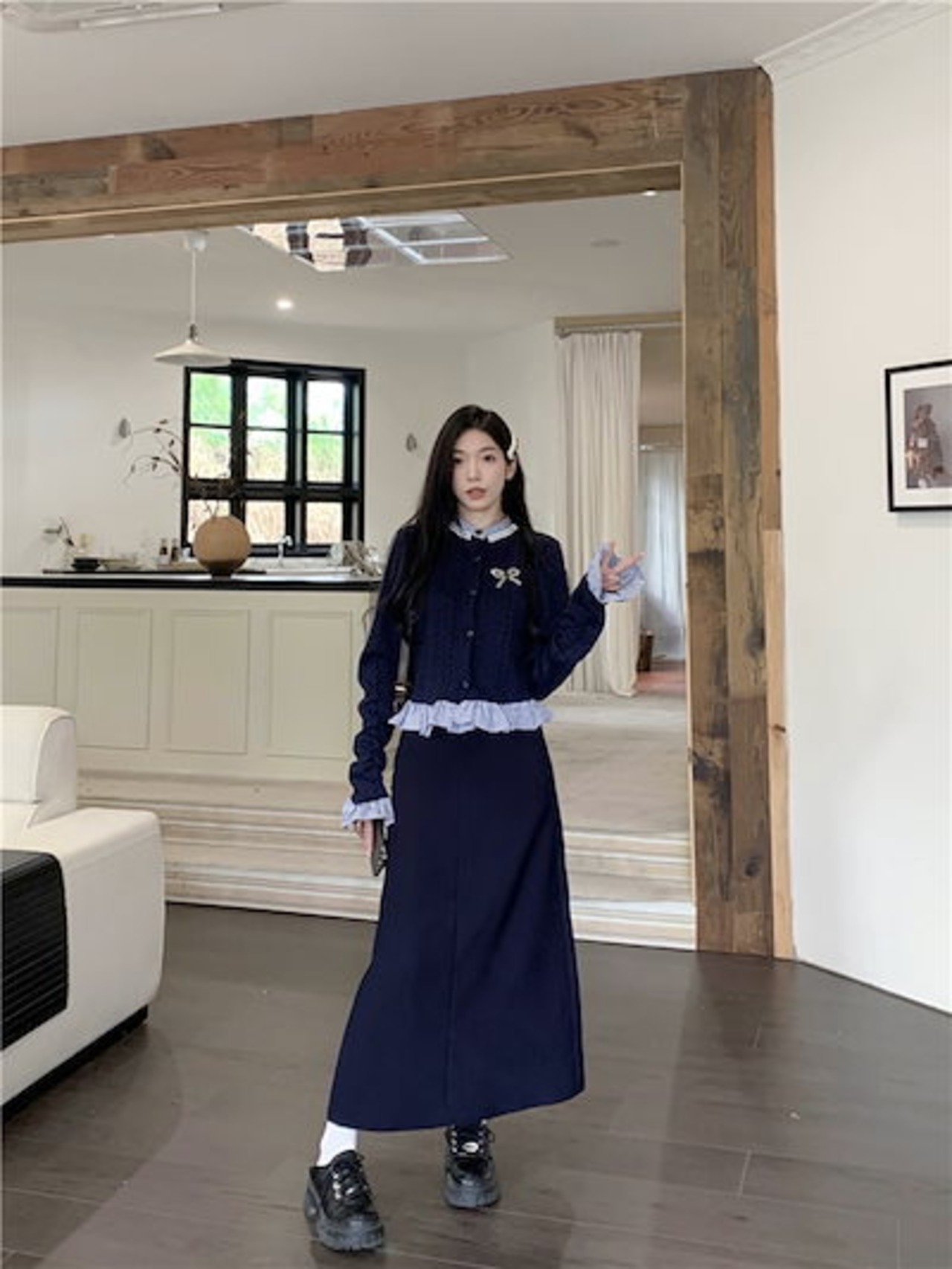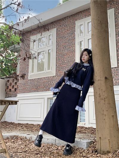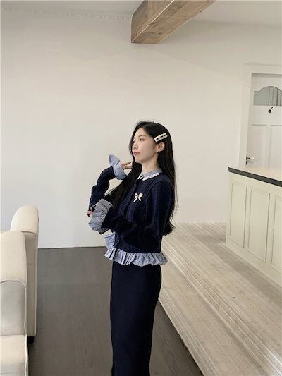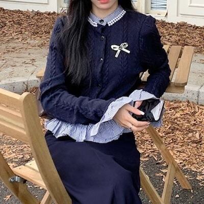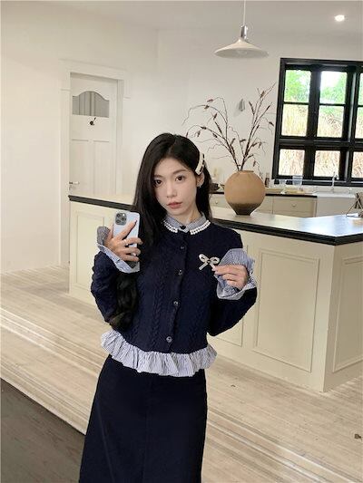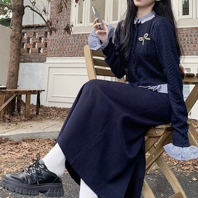 2024秋冬トップス シャツ ニット ボタン 重ね着風 二枚重ね 長袖 ゆったり 秋 おしゃれ かわいい キュート 甘め 韓国系ファッション レディース お出かけ丈
