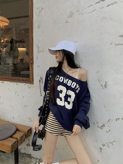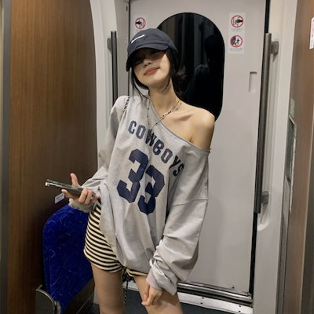 2024 秋冬 トップス 長袖 かわいいラウンドネック Tシャツ レディース 韓国風 33 ルーズ ゆったり 無地 カジュアル おしゃれサイズ シルエットファッション系シャツ衣装お出かけ