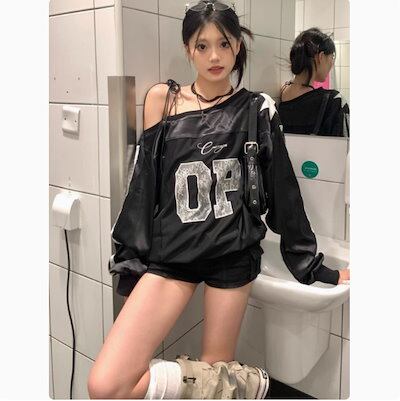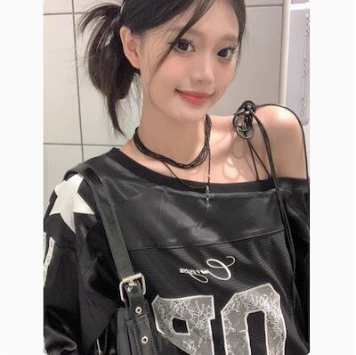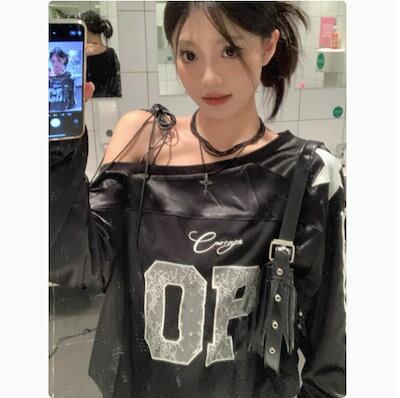 2024 秋冬 トップス 長袖 かわいいラウンドネック Tシャツ レディースロンt 韓国風ロゴ衣装ルーズゆったりカジュアルおしゃれサイズスリーブシルエットファッション系サイドシャツフットスウエット春