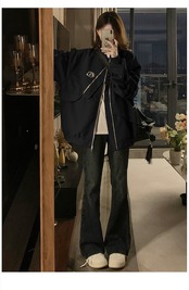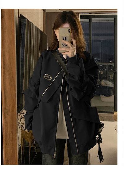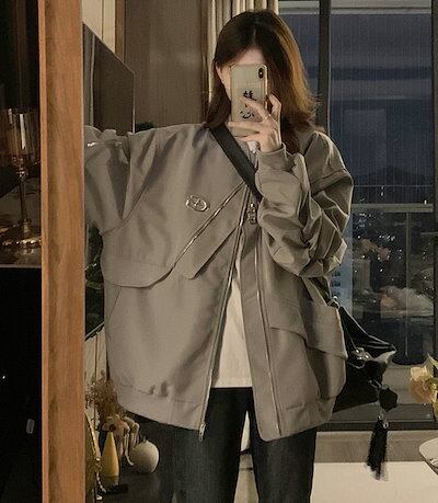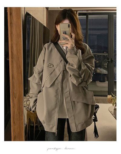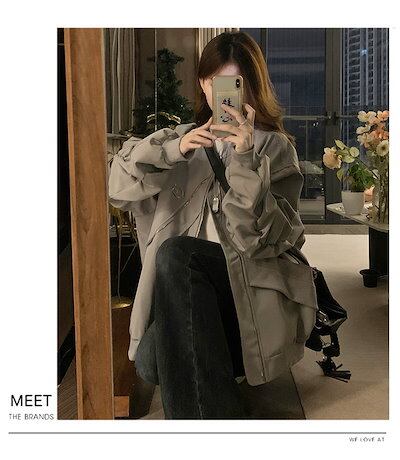 2024 秋 韓国 かわいい レディース フード付き アウター ブルゾン お出かけ 長袖セクシーシルエットトップスサイド冬カジュアルファッション系サイズお出かけフル丈トラック