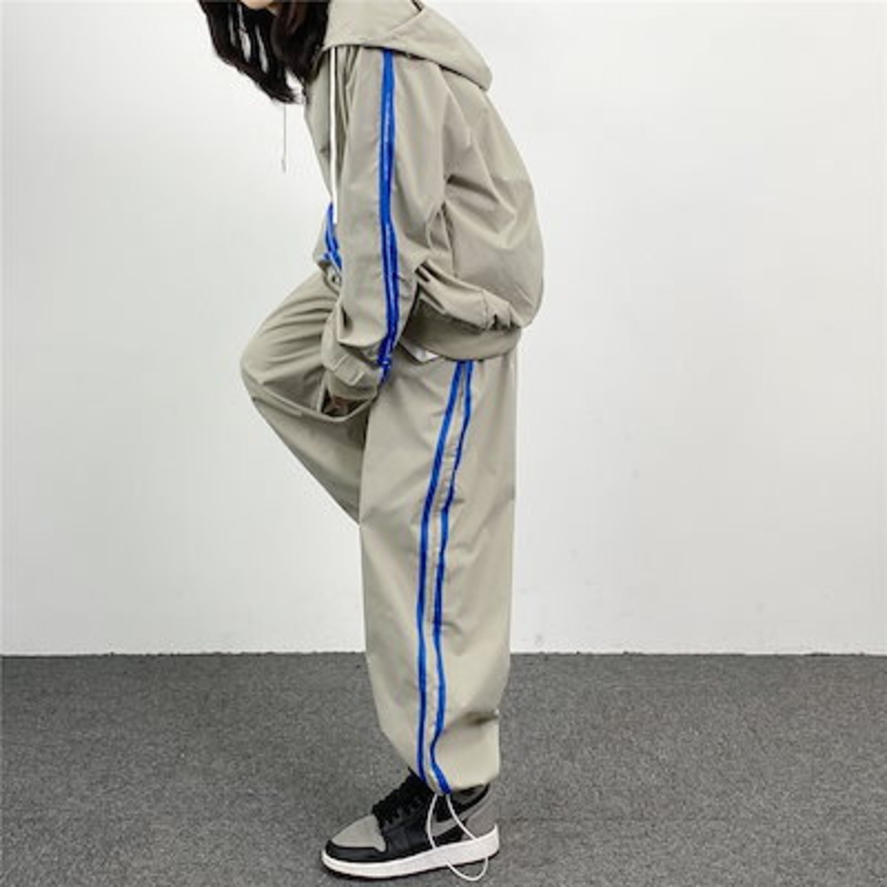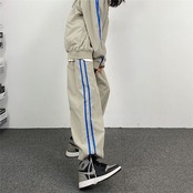 2024 春秋 2点セット ユニセックス トップス お出かけ 羽織り ショート丈 セットアップ ルーズ サイド ボトムス ストレート系冬 ゆったり サイズワイドシルエット リラックストラック