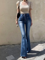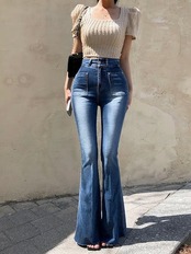 2024秋冬パンツ デニム ジーンズ ロング丈 スキニー ワイドレッグ ウォッシュ加工 ハイウエスト 美脚効果 脚長効果 細見え 秋 おしゃれ かわいい 韓国ファッション レディース お出かけ