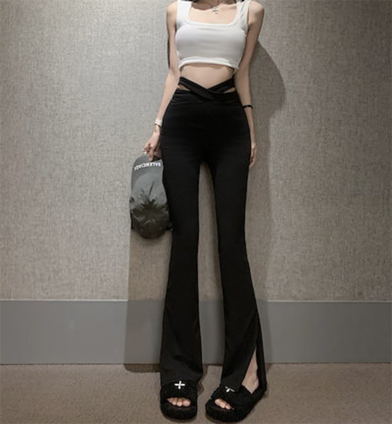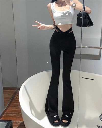 2024 春秋 パンツ モップパンツ ロングパンツ ワイド ハイウエスト 脚長効果 美脚効果 細見え 夏 カジュアルフィット かわいい 韓国系ファッションサイド レディース お出かけ