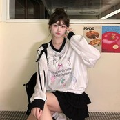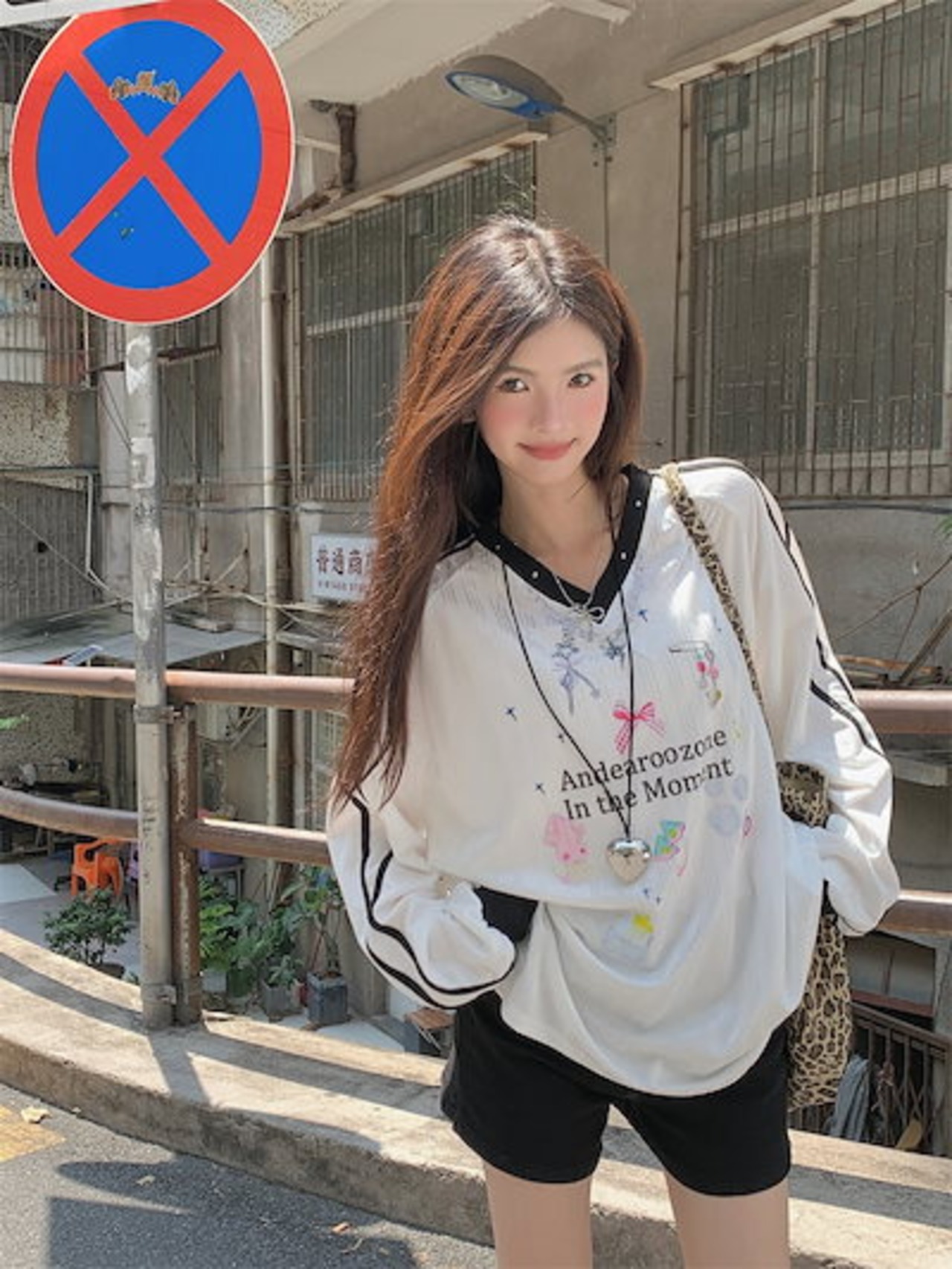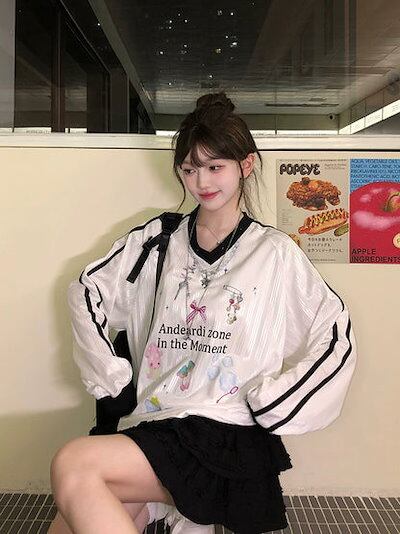 2024 秋冬 トップス 長袖 かわいいVネック Tシャツ レディース 韓国風 ロゴ衣装ルーズ ゆったりカジュアルおしゃれサイズスリーブシルエットファッション系サイドシャツフットスウエット春
