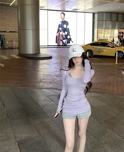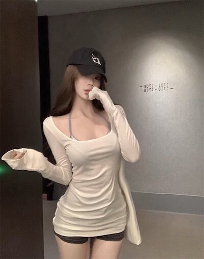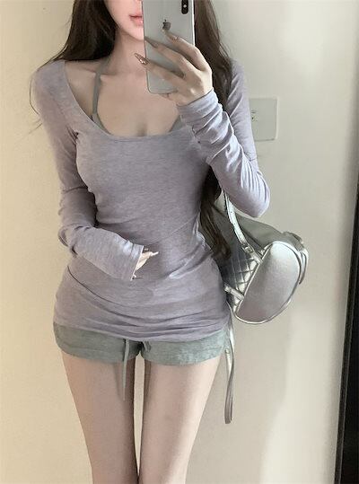 2024 秋冬tシャツ スリムフィット ロンt 薄手 Uネック 無地 トップス 長袖 シンプル レトロ 韓国ファッション レディース 大人可愛い ガーリー