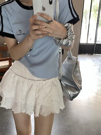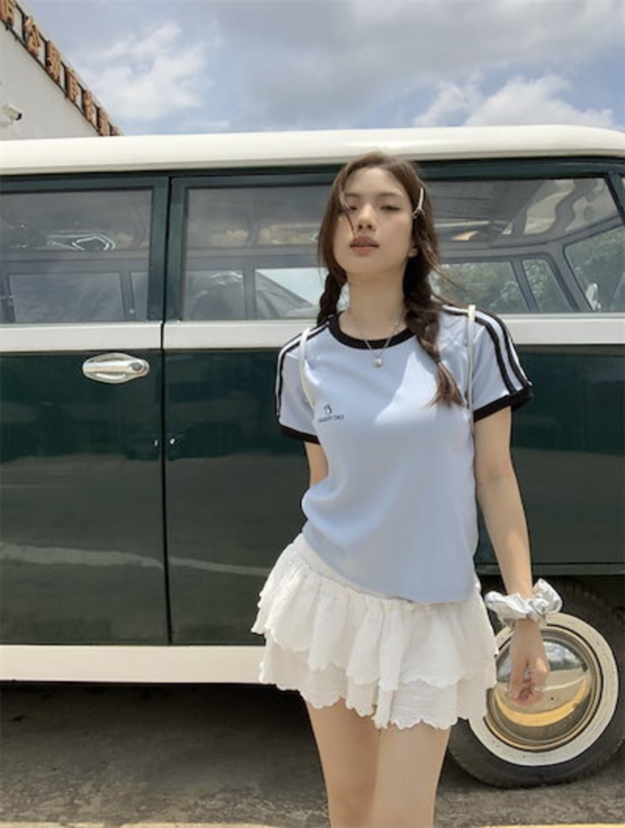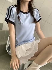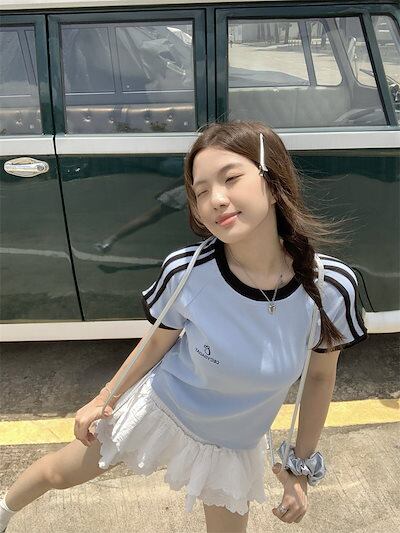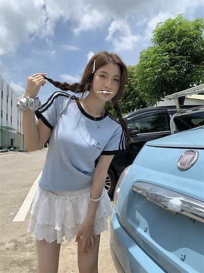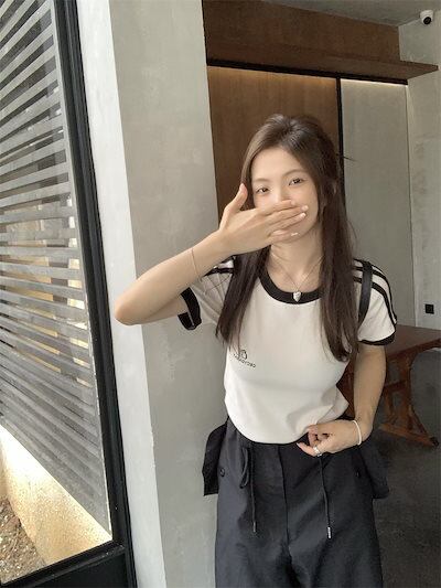 2024 春夏トップス 大人可愛い風半袖 Tシャツ 韓国 ラウンドネックロゴスリム かわいいへそ出し ショートおしゃれスリーブカジュアルサイドコーデ丈ファッション系レディースストリートお出かけ T