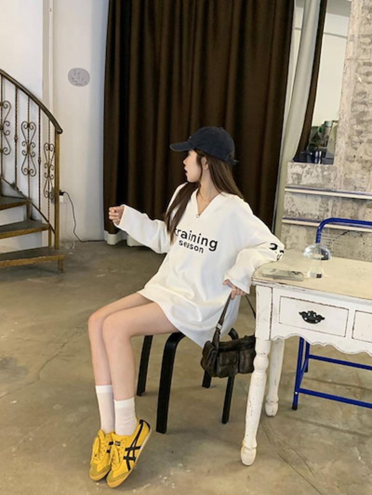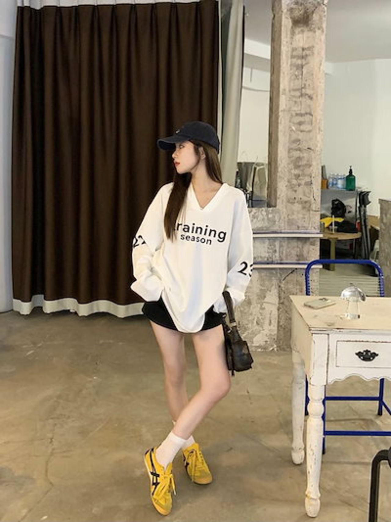 2024 秋冬トップス スウェット 長袖 Vネック 英語 数字 23 ゆったり 秋 白 おしゃれ かわいい 韓国ファッション レディース お出かけ