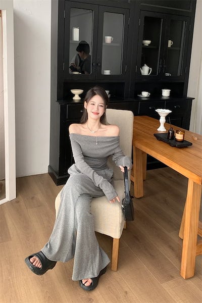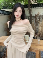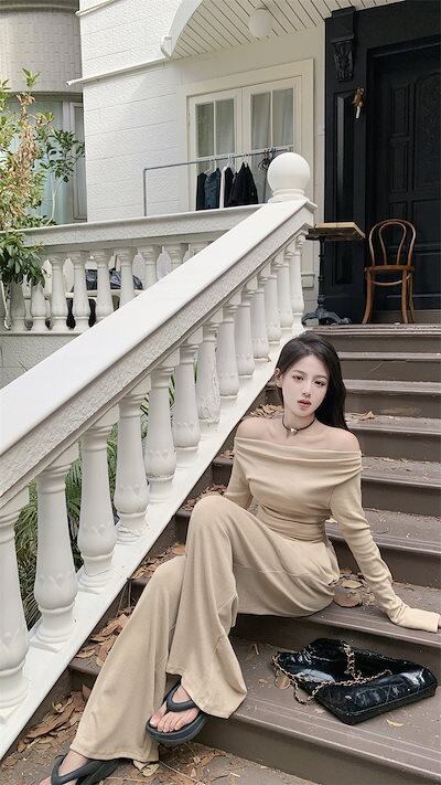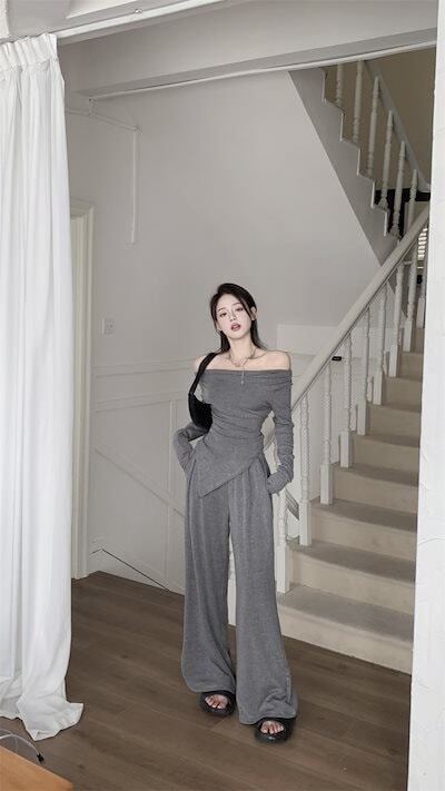 2024 秋冬 トップス 長袖 かわいいラウンドネック トレーナーTシャツ 肌見せ レディース ストレート韓国風ルーズゆったりカジュアルおしゃれサイズシルエットファッション系コーデ衣装上下セットアップ