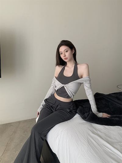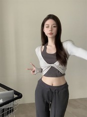 2024秋 長袖 Tシャツ ショート丈 カットソー トップス カジュアル 配色 韓国系ストリート ロゴ へそ出し タイトネックスリーブ 肌見せ T ファッションレディース かわいい衣装風冬トップス