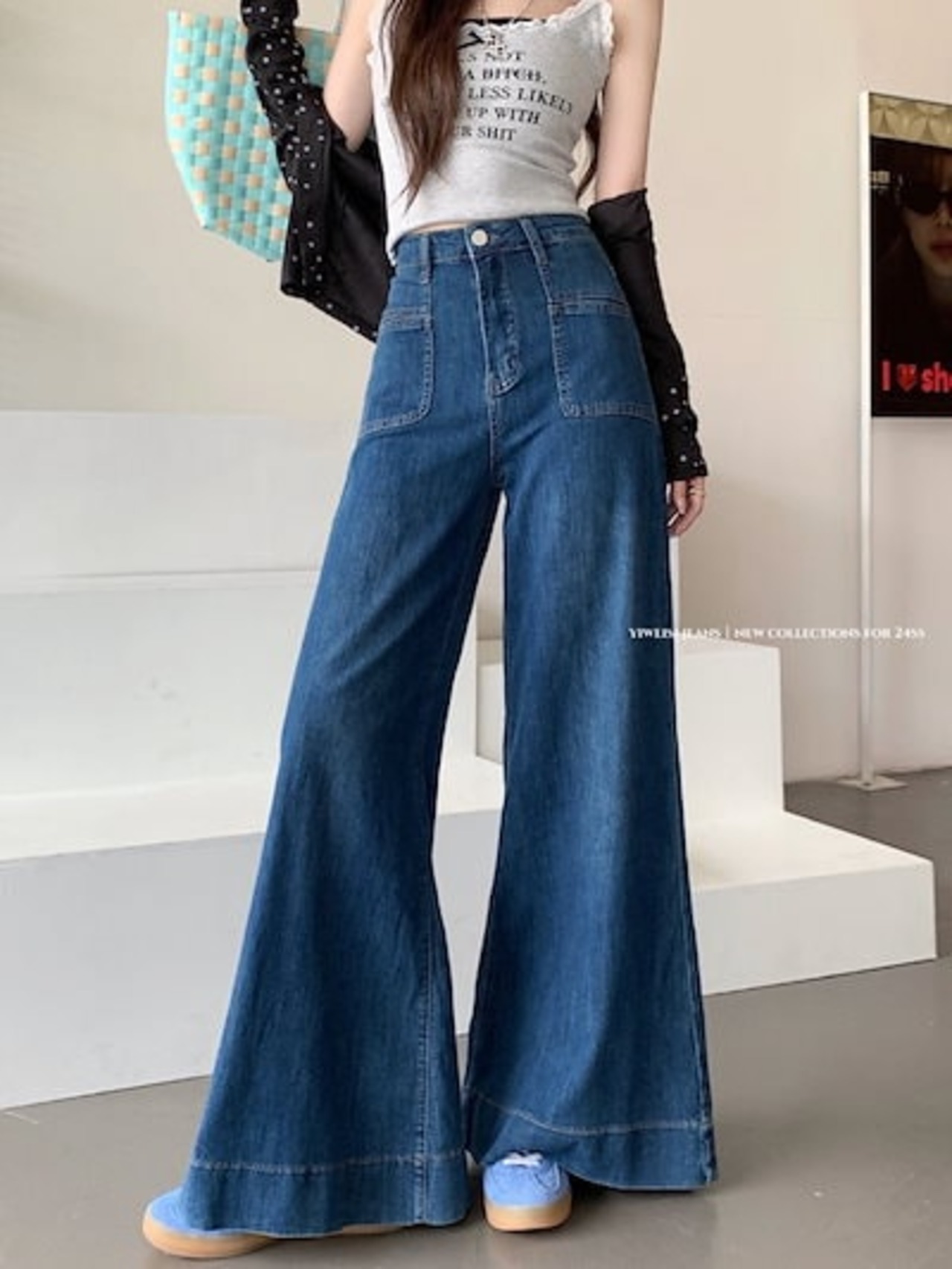 2024秋冬パンツ デニム ジーンズ ロング丈 ワイドレッグ ハイウエスト 美脚効果 脚長効果 細見え 秋 おしゃれ かわいい 韓国ファッション レディース お出かけ