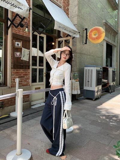 2024パンツ ロング丈 ワイド ストレート ストライプ ウエストゴム ハイウエスト 美脚効果 脚長効果 細見え 秋 おしゃれ かわいい 韓国ファッション レディース お出かけ