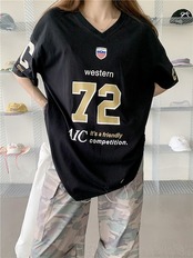 2024 夏 韓国可愛い風トップス Tシャツ ファッション系 半袖 スリムフィット サイド ペイントシルエットゆったり丈 休日レディースサイズ韓国Vネック おしゃれ カジュアル メンズライク T