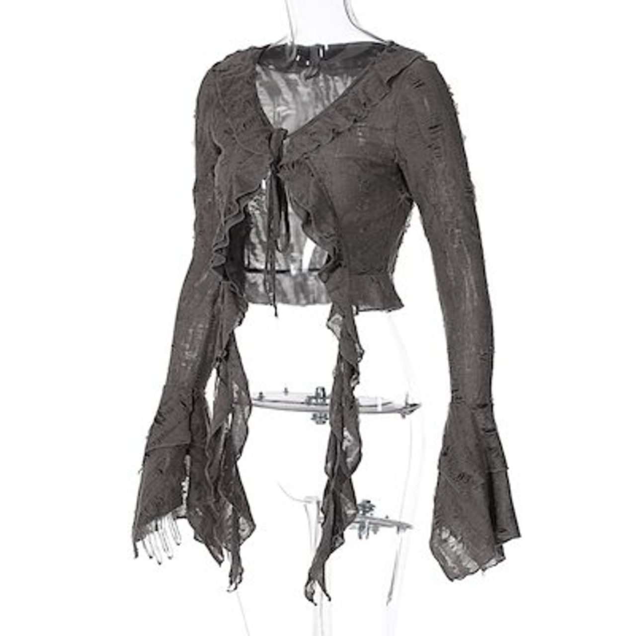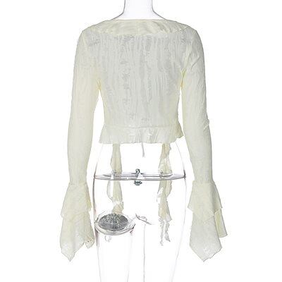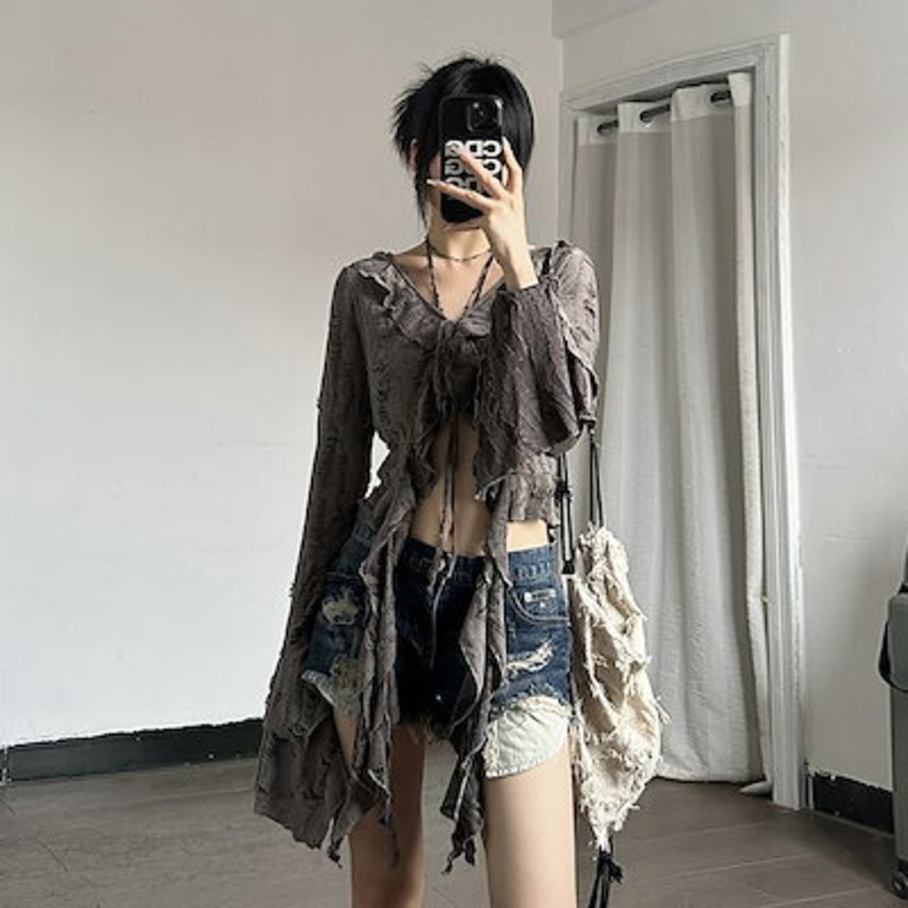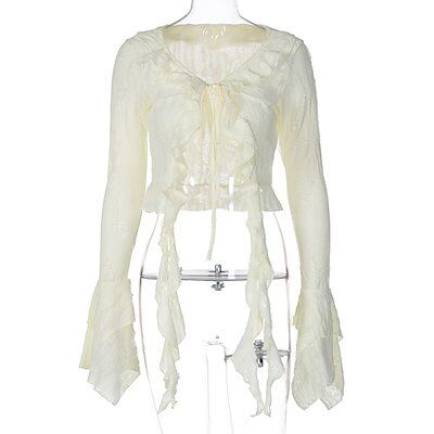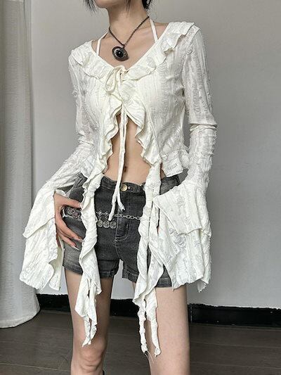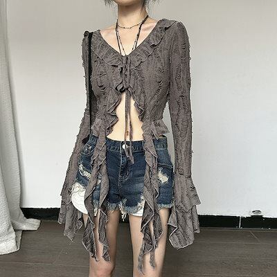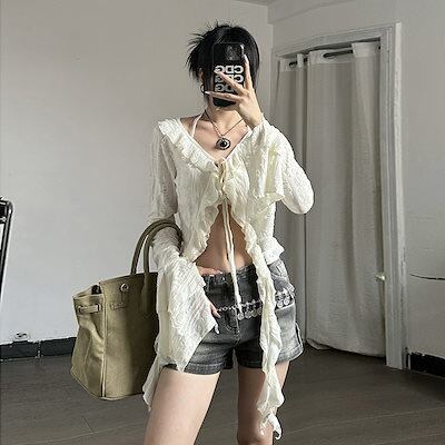 2024 夏秋 韓国 ショート丈 変形 カーディガンブラウストップスレディース長袖へそ出し UVカット 羽織り きれいめライトニットOLネックカジュアルフレンチフェミニンファッションフィッシュ系