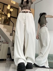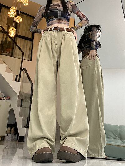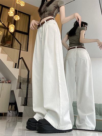2024 パンツ ロング丈 ハイウエスト 美脚効果 脚長効果 細見え 白 おしゃれ かわいい 甘め 韓国系ファッション レディース お出かけ 秋冬