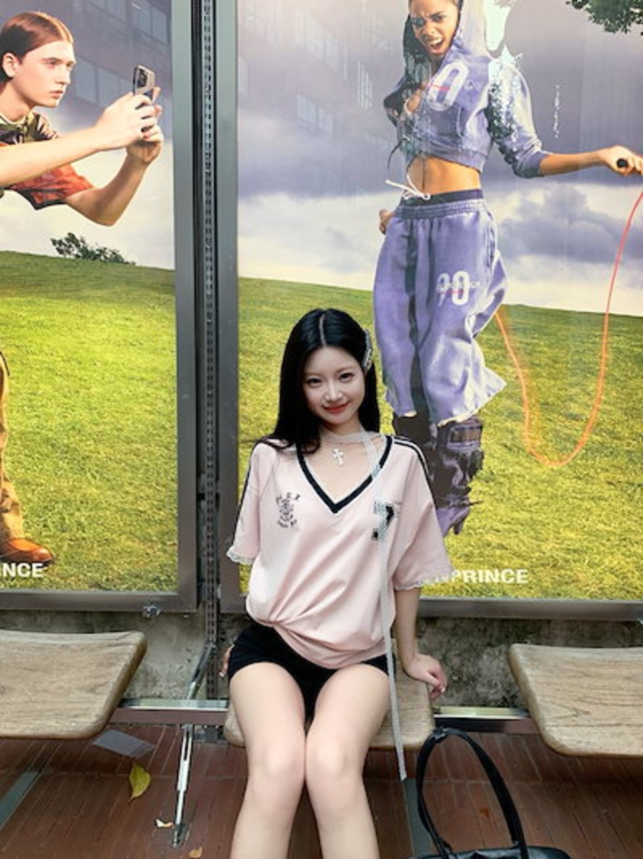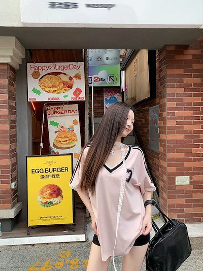 2024夏 韓国可愛い風トップス Tシャツ ファッション 半袖 スリムフィット ロングサイド ペイントシルエット ゆったり丈 休日レディースサイズ韓国Vネック おしゃれ カジュアル メンズライク T