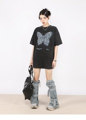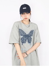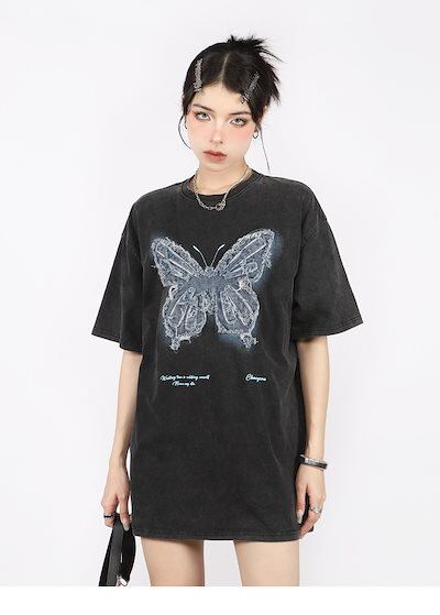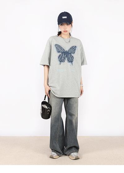 2024 夏 韓国 甘いトップス Tシャツ ファッション 半袖 スリムフィット サイド ペイントシルエット ゆったりコーデ 休日レディースサイズ韓国ネック丈 おしゃれ カジュアル メンズライク T