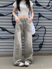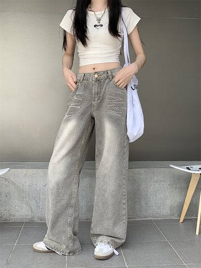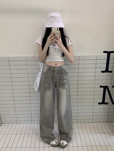 2024春夏パンツ デニム ジーンズ ロング丈 ハイウエスト 美脚効果 脚長効果 細見え 秋冬 おしゃれ 加工 かわいい 韓国ファッション レディース お出かけ