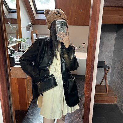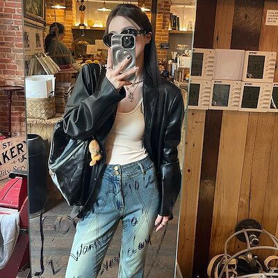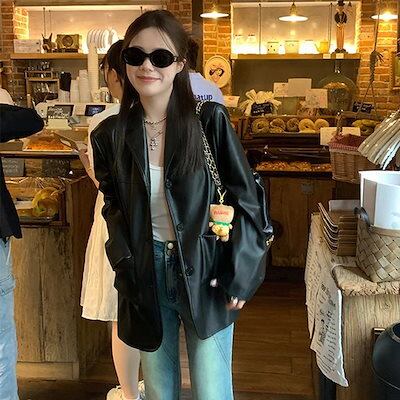2024 秋 新作ライダースジャケット アウター ゆったり ショート pu レザージャケット 韓国ファッション 流行り トップス ショット革ジャケット 着痩せ ジャケット