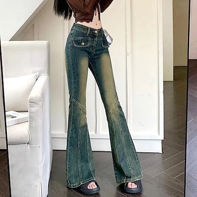 大人気 デニムパンツ 秋 新作 アメリカン パンツ デニム ブルー ジーンズ ロング丈 スキニー レッグ加工 ハイウエスト 細見え 秋 カジュアル ファッション お出かけ レディース 脚長効果 美脚効