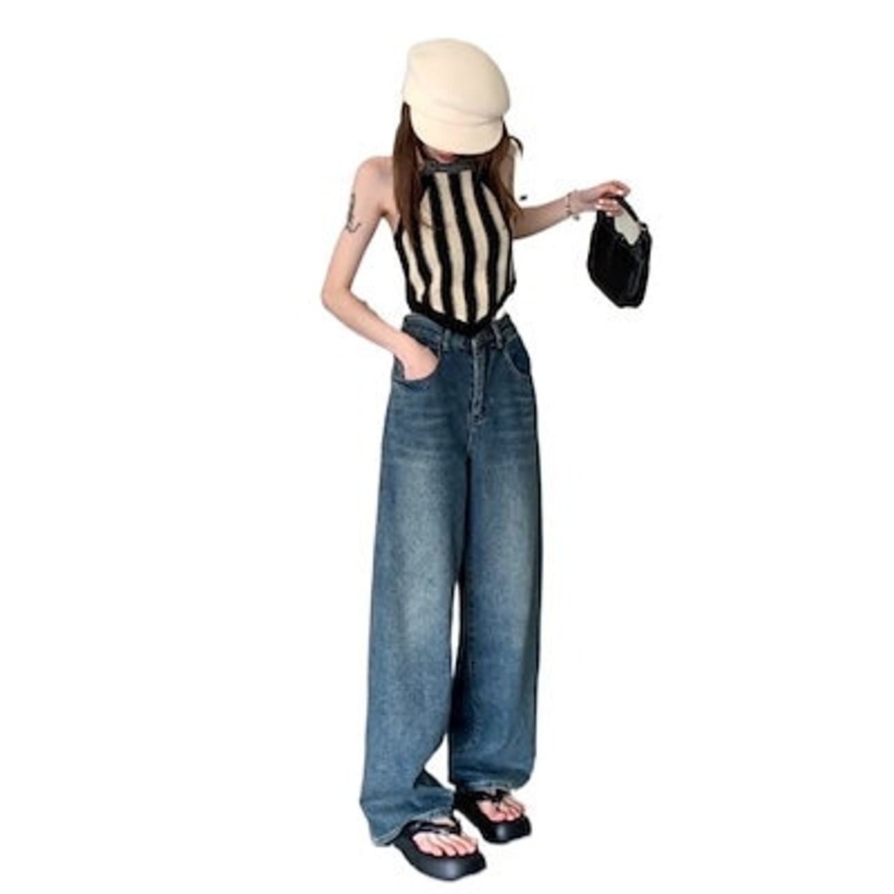 大人気 デニムパンツ 秋 新作 パンツ デニム ジーンズ ワイド ストレート ハイウエスト 細見え 春 カジュアル ファッション お出かけ レディース 脚長効果 美脚効果