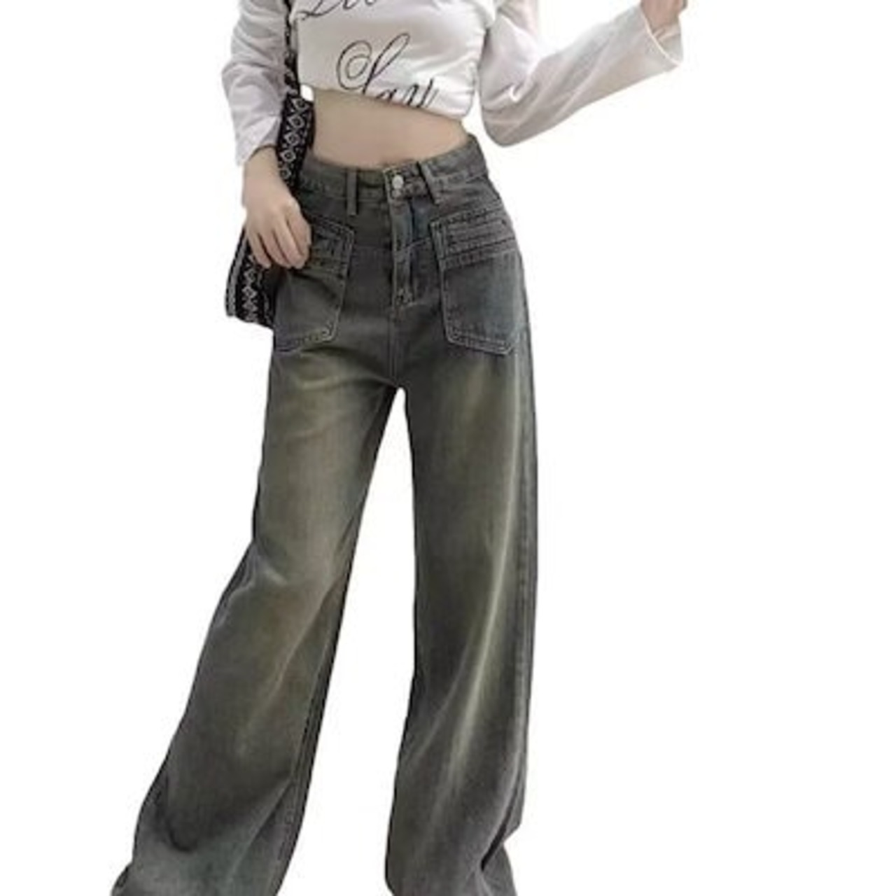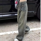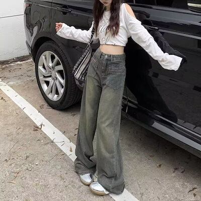大人気 デニムパンツ 秋 新作 レトロジーンズ女性春秋 ハイウエスト薄型デザインワイドパンツストレートドラッグズボン潮 レディース 脚長効果 美脚効果