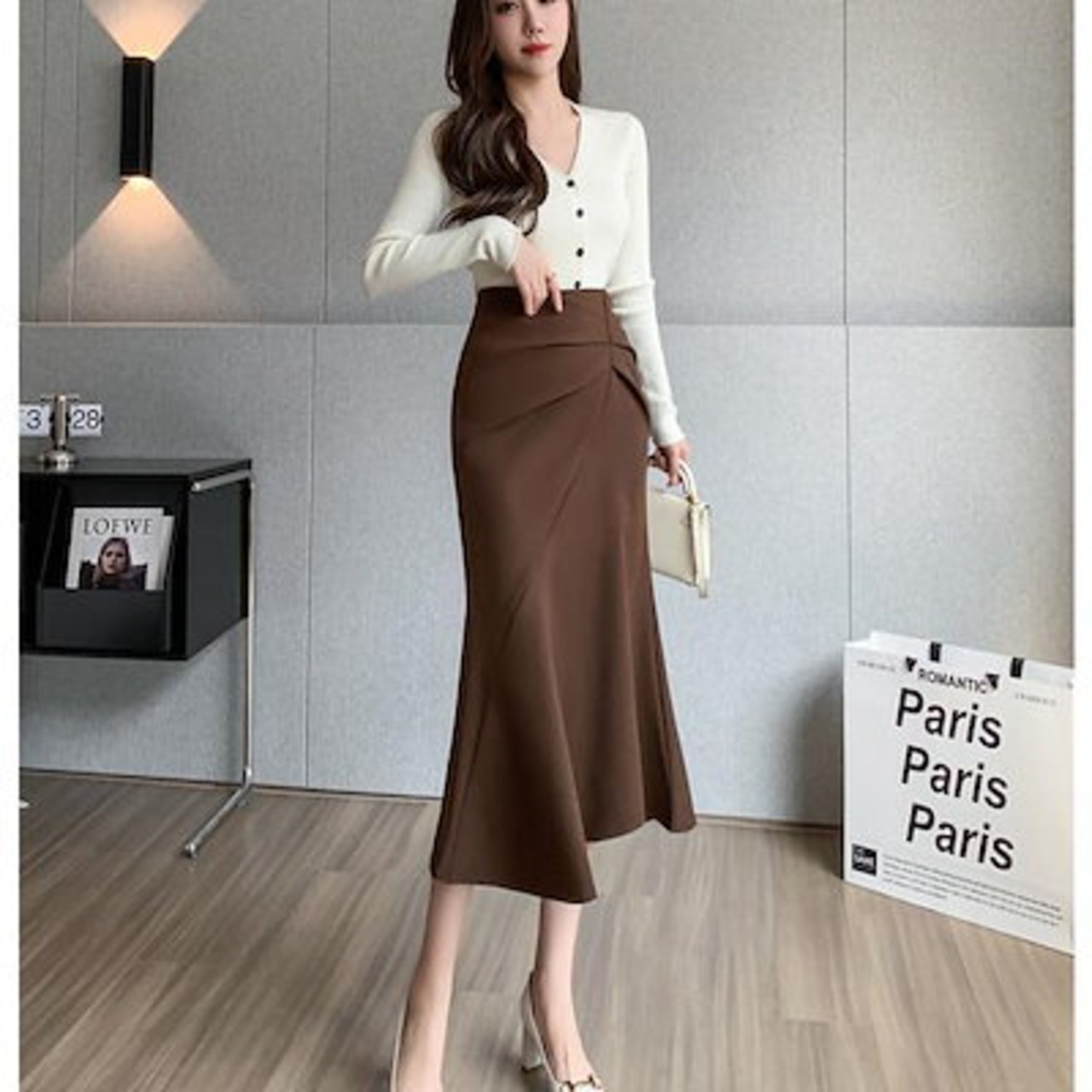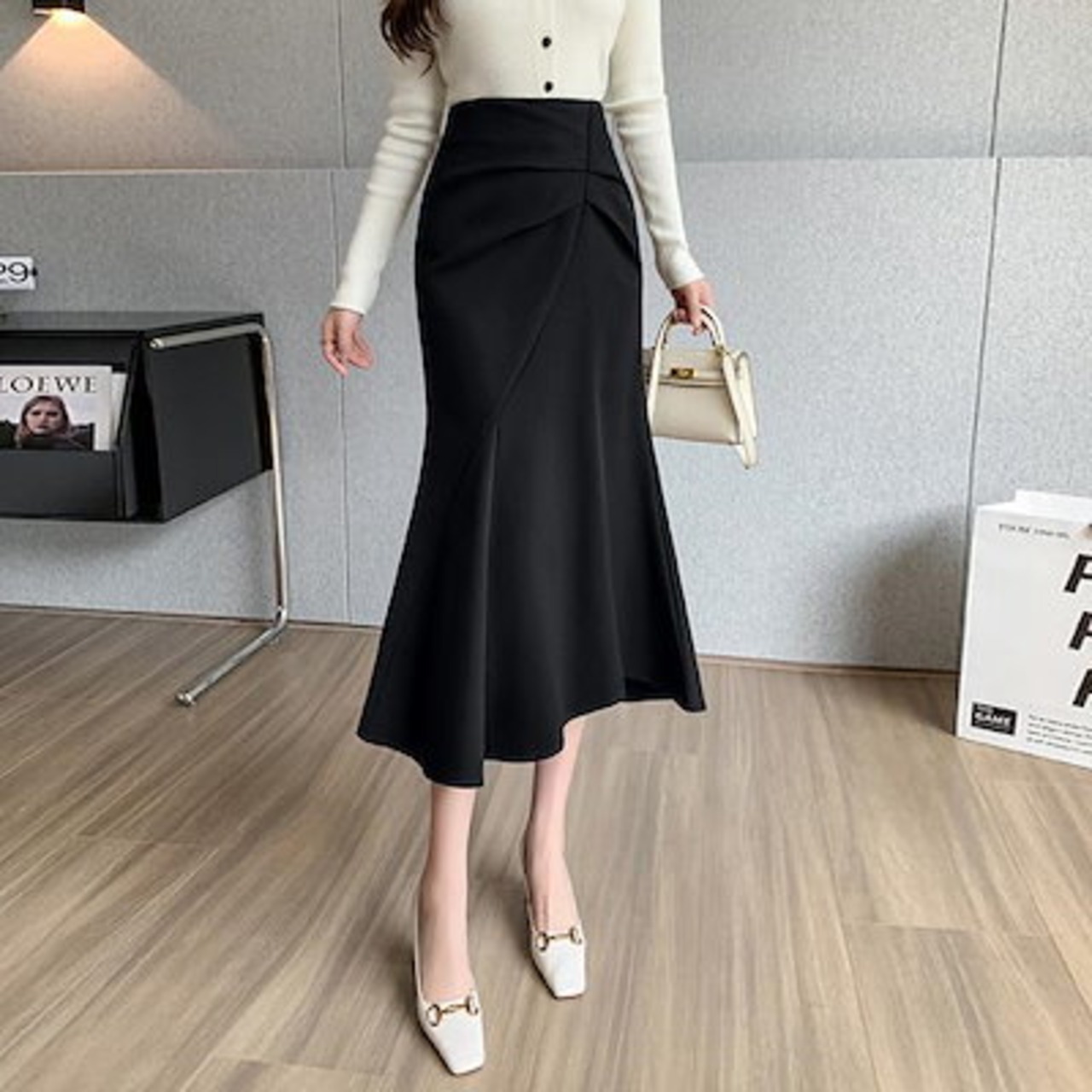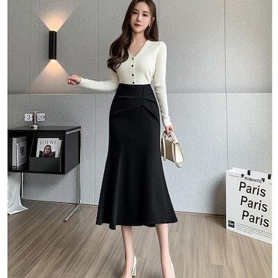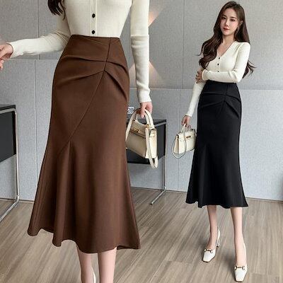 2024 人气 秋 新作 ミディアムスカート ウールのスカート ミディアム A字スカート タイトスカート フレンチスカート 百掛け やせて見える 韓国ファッション 韓国ファッション