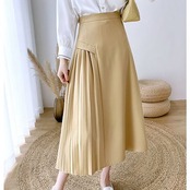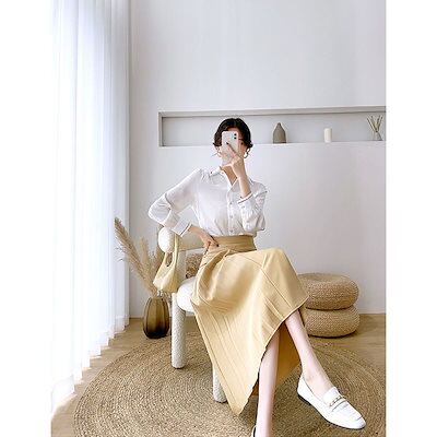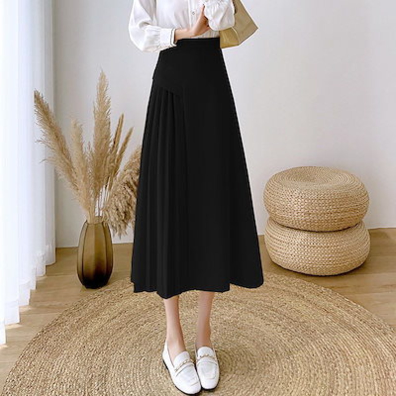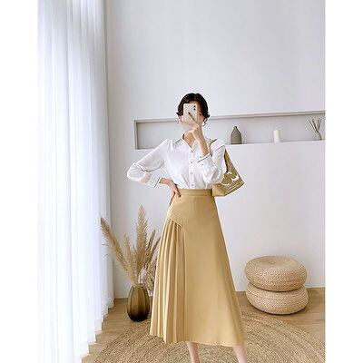 2024 人气 秋 新作 ミディアムスカート 垂下感 不規則 プリーツスカート スーツ A字スカート 百掛け やせて見える 韓国ファッション 韓国ファッション