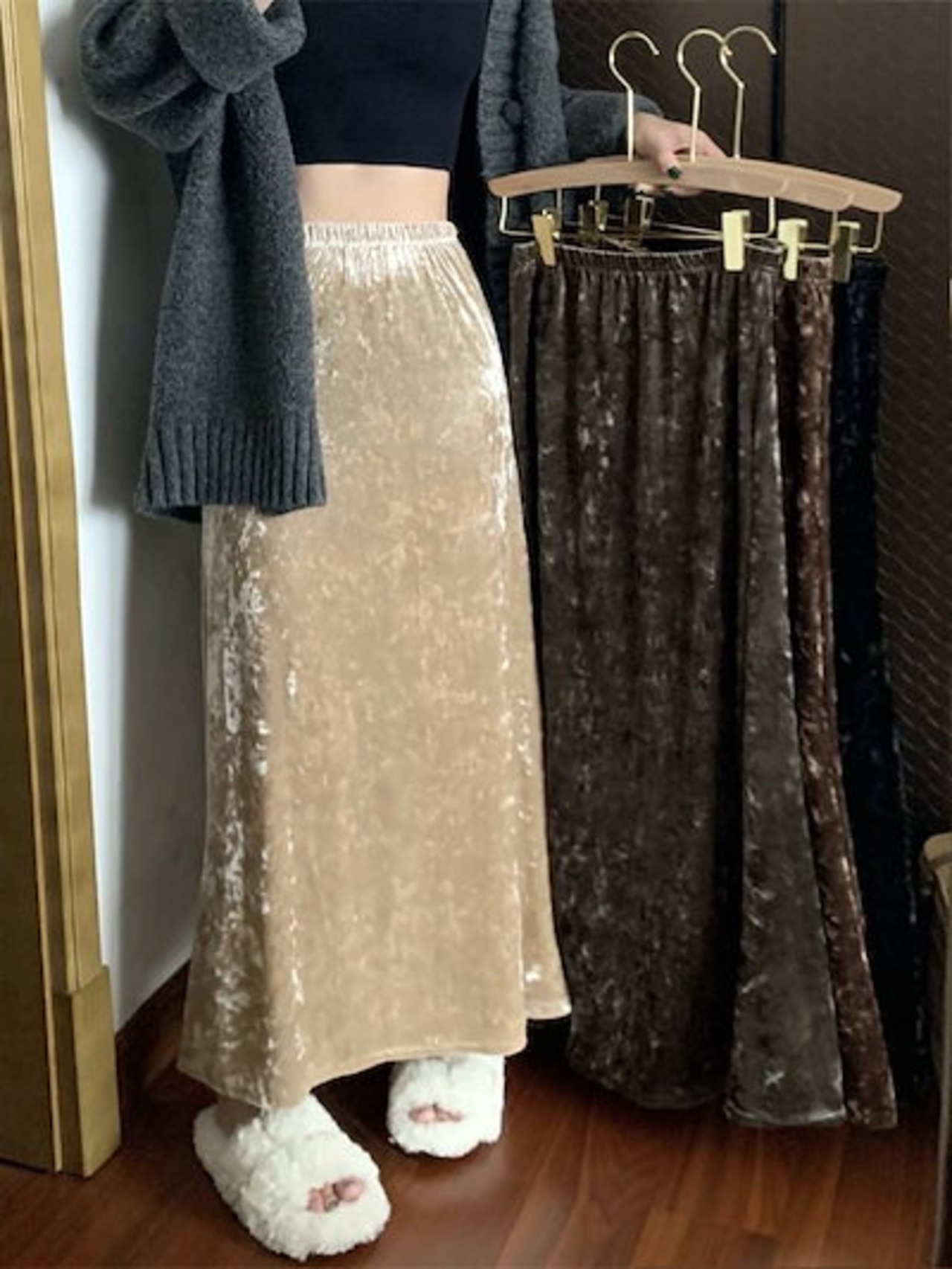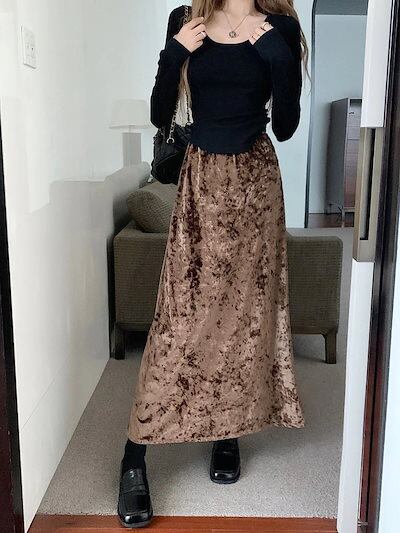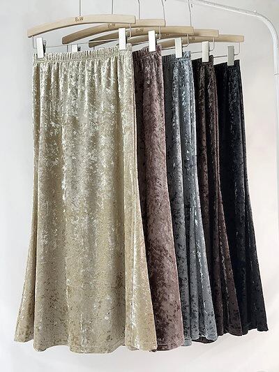 2024 人气 秋 新作 プリーツスカート 秋冬 ロングスカート じゅんしょく ベルベット 光沢感スカート 韓国ファッショ 着痩せ 韓国ファッション