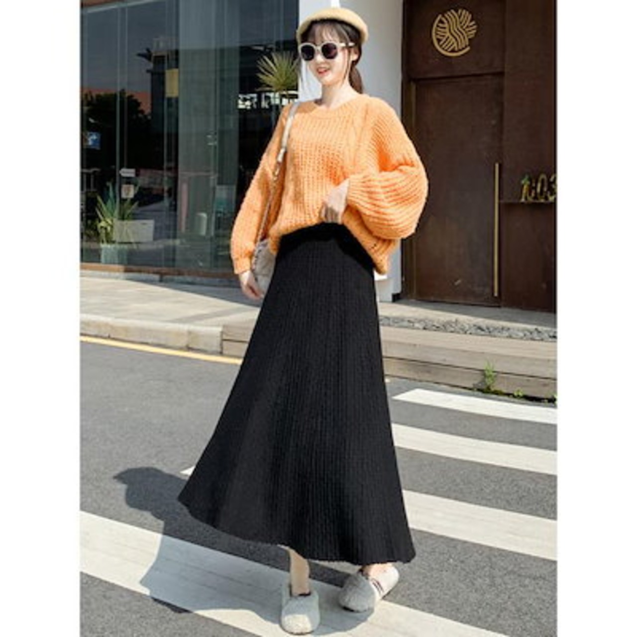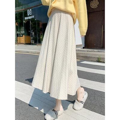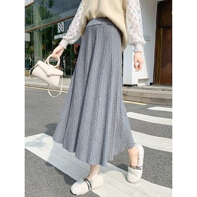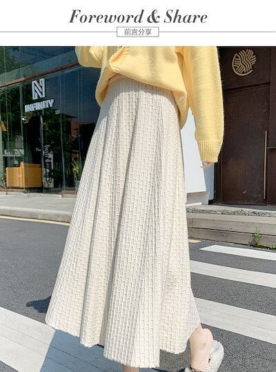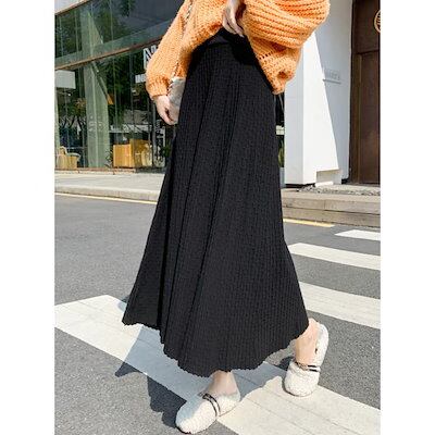 2024 人气 秋 新作 プリーツスカート 春秋冬 A字半身ロングスカート ニット たれ下がる 百掛け 韓国ファッショ 着痩せ 韓国ファッション